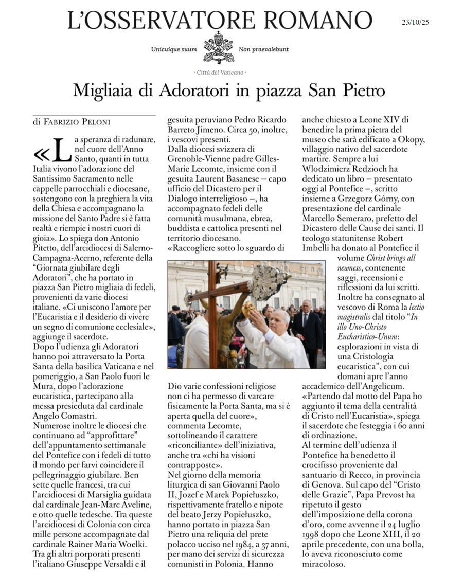 Giornata Giubilare degli Adoratori 22 ottobre 2025